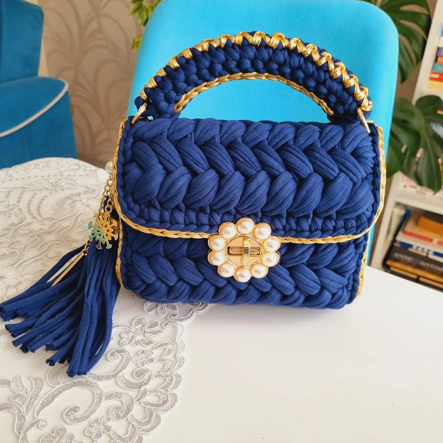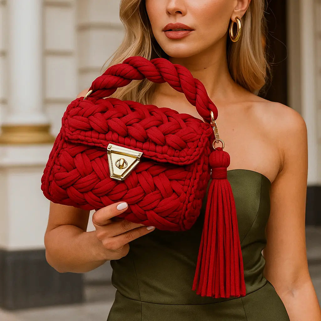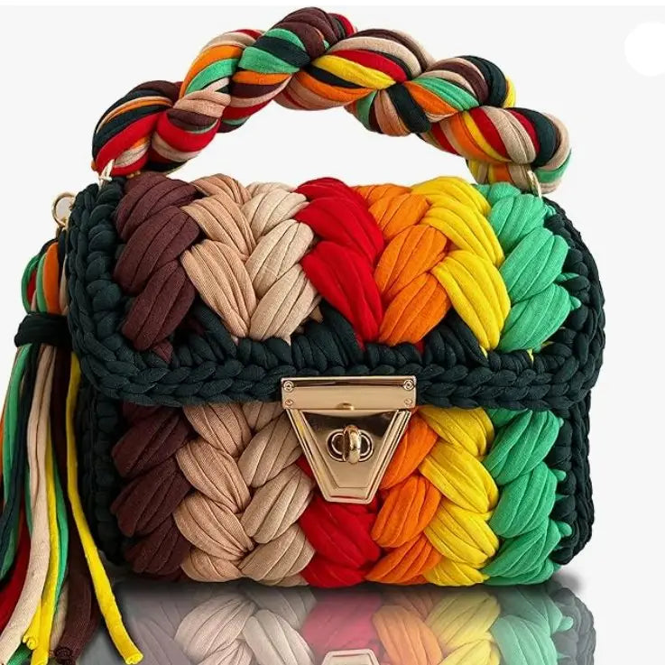 * ππππππ πππππππππ πππ: %100 handmade bag is suitable for many fashion styles, can hold many items, phones, makeup, sunglasses, purses. (Size: 9x8x4 Inches - 23 (L) x 20 (H) x10 (W) Cm) It will complete your elegance with daily and evening clothes. * πππππππ ππππππ πππππππ: When you carry our crocheted bag on the beach, wedding, party or on the street, its sophisticated design and stunning trendy look will attract a lot of peopleβs attention. It shows off your fashionable and elegant taste. * πππππππ ππππππππ πππππ: Handmade crocheted bag made of premium T-shirt combed yarn with cottons.