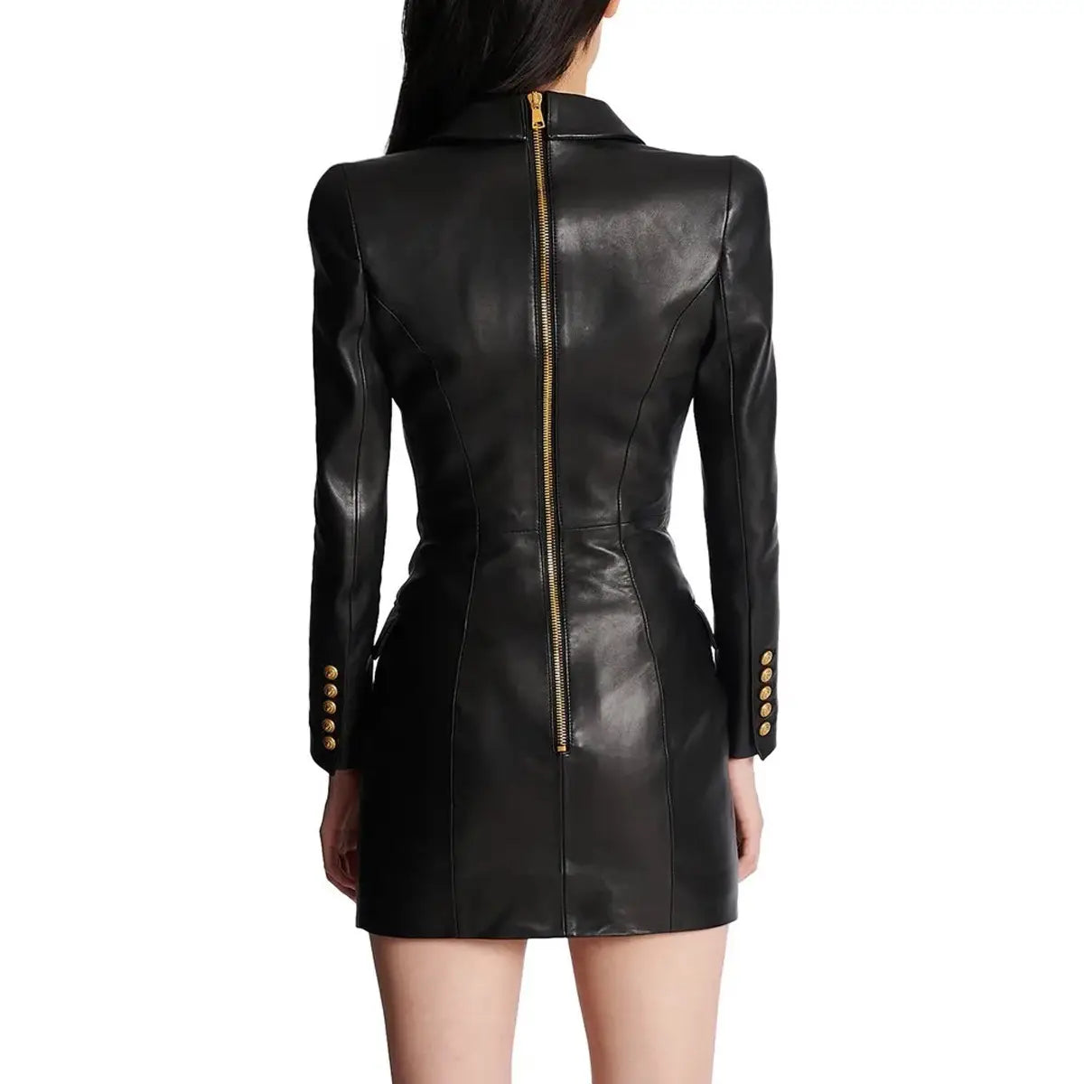 Dive into the world of style and sophistication with our women’s PU slim fit suit dress, a perfect blend of elegance and comfort. Crafted from high-quality PU leather, this dress offers a luxurious feel and look. The slim fit design accentuates the body’s natural curves, ensuring a flattering fit for all body types. Featuring a stylish double-breasted design adorned with golden buttons, it exudes an aura of class and refinement. The suit dress is versatile - ideal for business meetings, evening events or social gatherings. Step out in confidence and make a statement with this timeless piece.